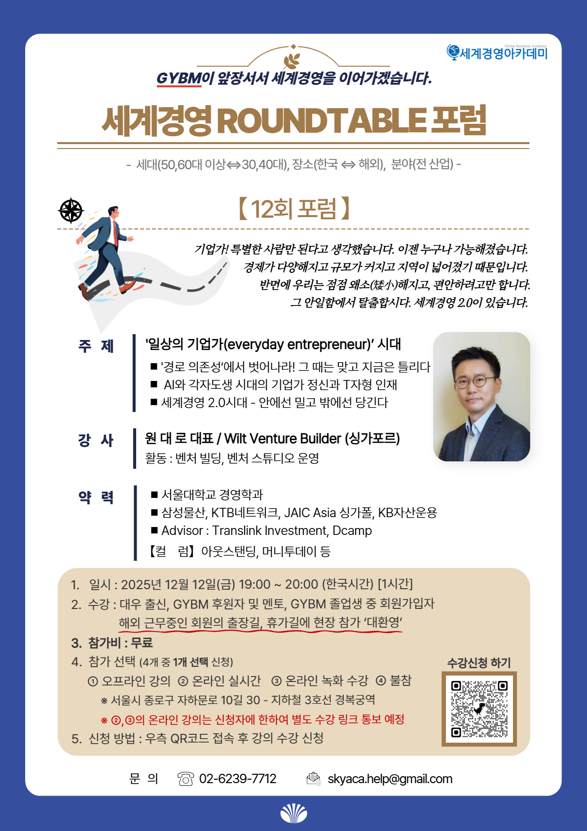 [본 강의는 세계경영ROUNDTABLE포럼 회원 전용 상품입니다.]